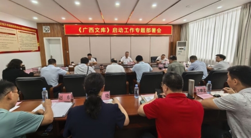 2025年7月31日上午,《广西文库》启动工作专题部署会在南宁召开。广西壮族自治区地方志办公室党组书记、主任梁志强出席会议并作专题部署,党组成员、副主任金湘滨、吴辉军出席会议。会议由吴辉军主持。