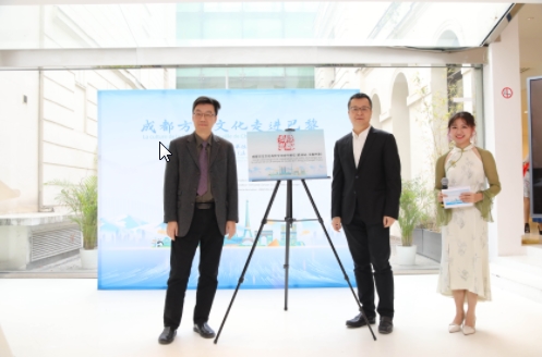 活动中,成都会场与会嘉宾启动成都历史文化海外落地展(法国巴黎站),巴黎会场与会嘉宾为成都方志文化海外交流合作单位(法国巴黎)揭牌。